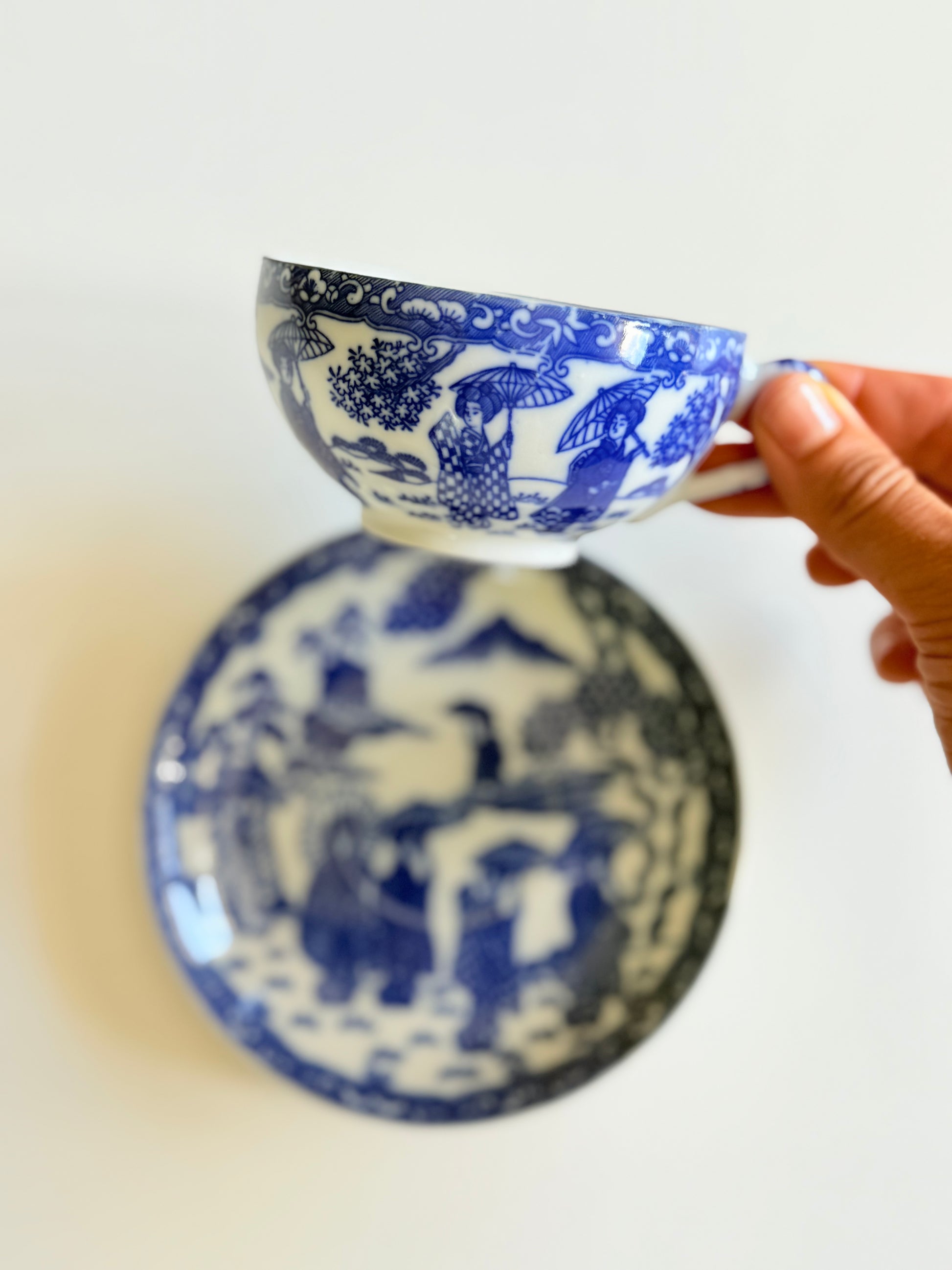 Ceașcă din porțelan cu gheișe, blue China, pictată manual