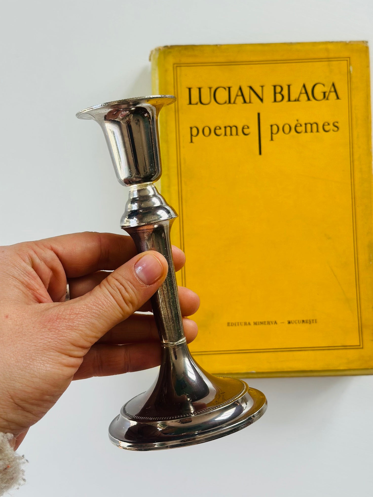 Sfeșnic argintiu, 15 cm înălțime